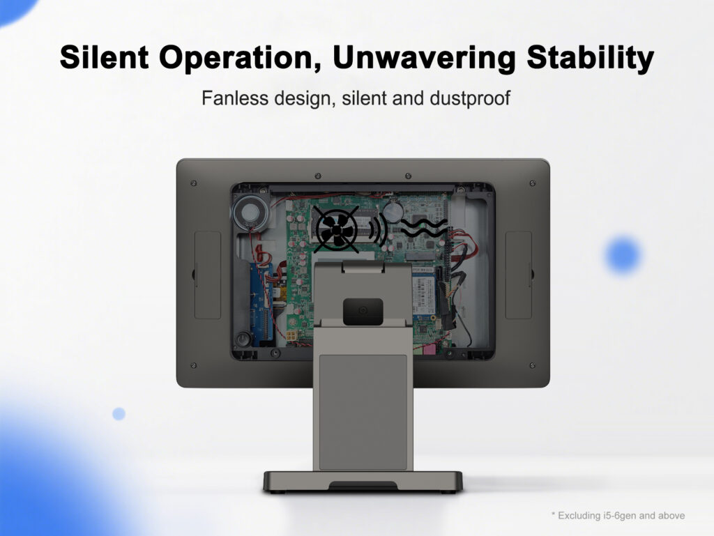 Fanless design, silent and dustproof; integrated screen and motherboard design, easy to maintain