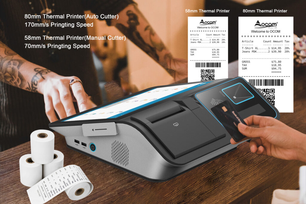• 58mm and 80mm high speed thermal printer built in for option